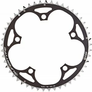 - Caractéristiques : Compatible avec les pédaliers double Shimano ou autres marques 5 branches en entraxe de 130mm / Position: Extérieure / denture: 47 dents / Compatible chaine 9/10 vitesses / Matière: Aluminium 7075