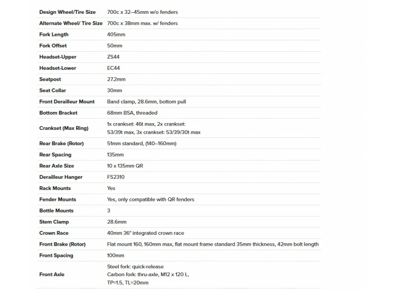 Il peut accepter des pneus de 45 mm ou 38mm si vous installez des garde-boues.