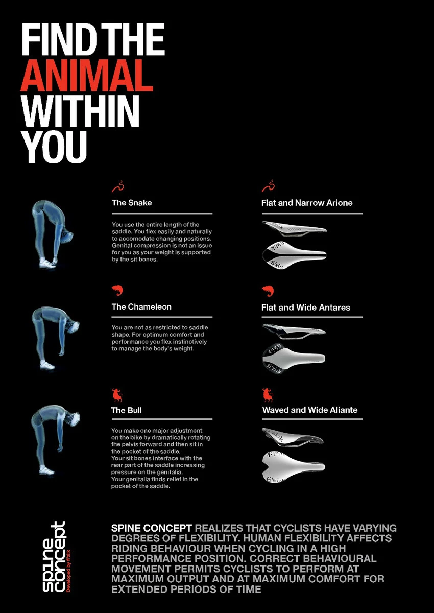 La selle pour les morphologies Taureaux dans le spine concept Fizik ! c’est la selle vélo la plus utilisée dans les pelotons amateurs et professionnels.